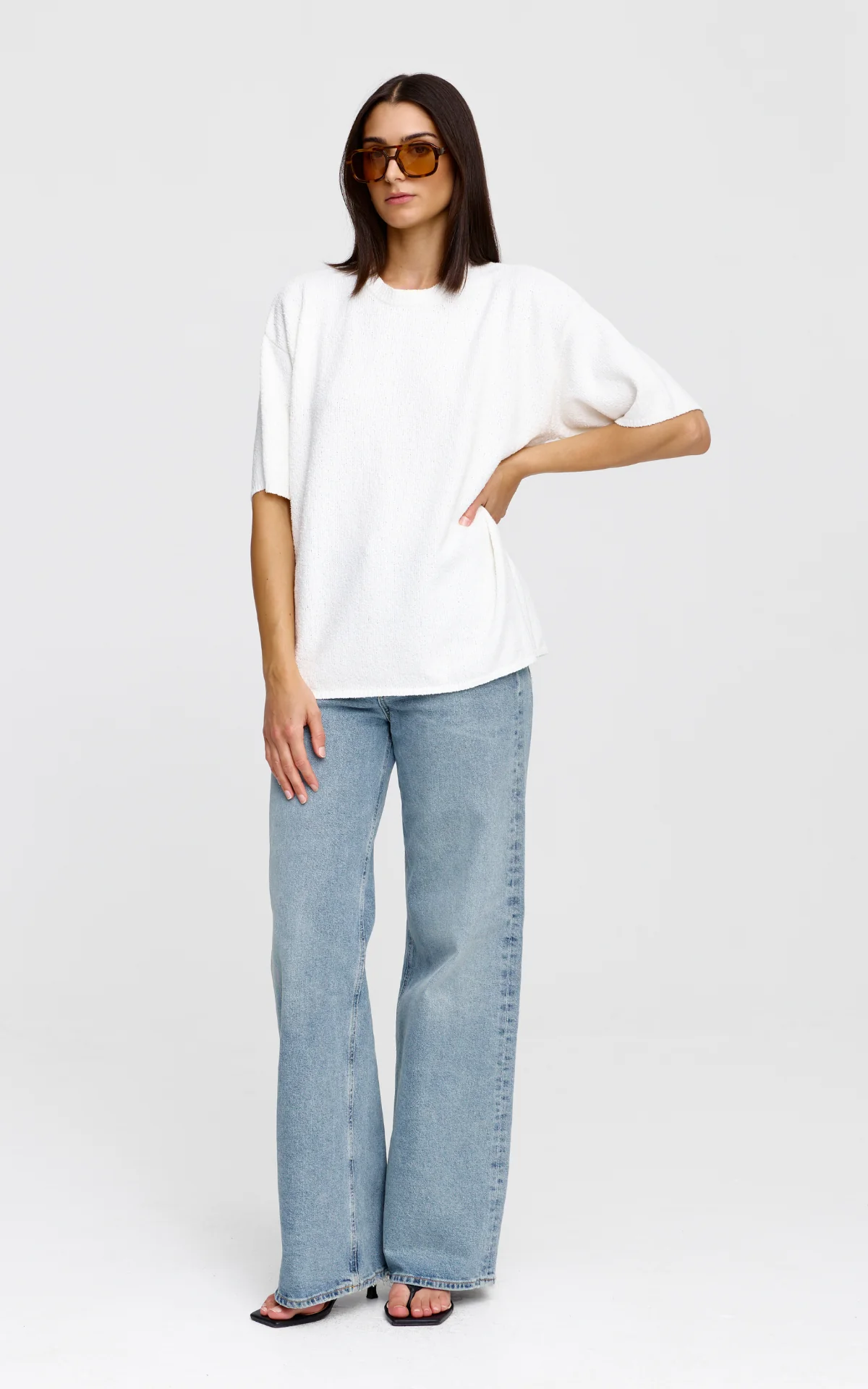 The Camden Knit Tee is a flattering oversized shape made in our luxe boucle knit fabric. This timeless staple can be paired with Denim to complete the look.