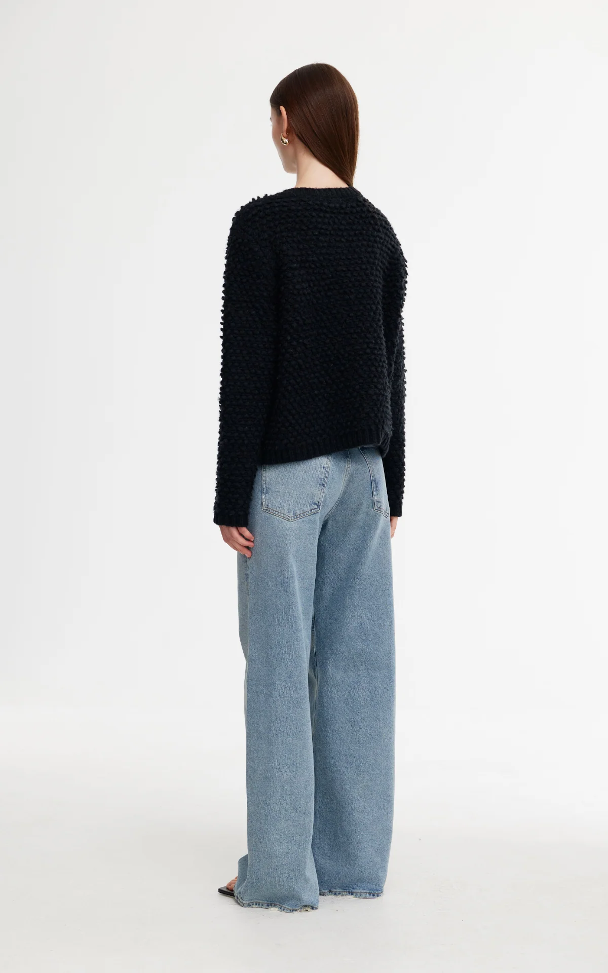 Made in a wool blend, the boucle knit has a playful texture that will keep you warm in the cooler months.