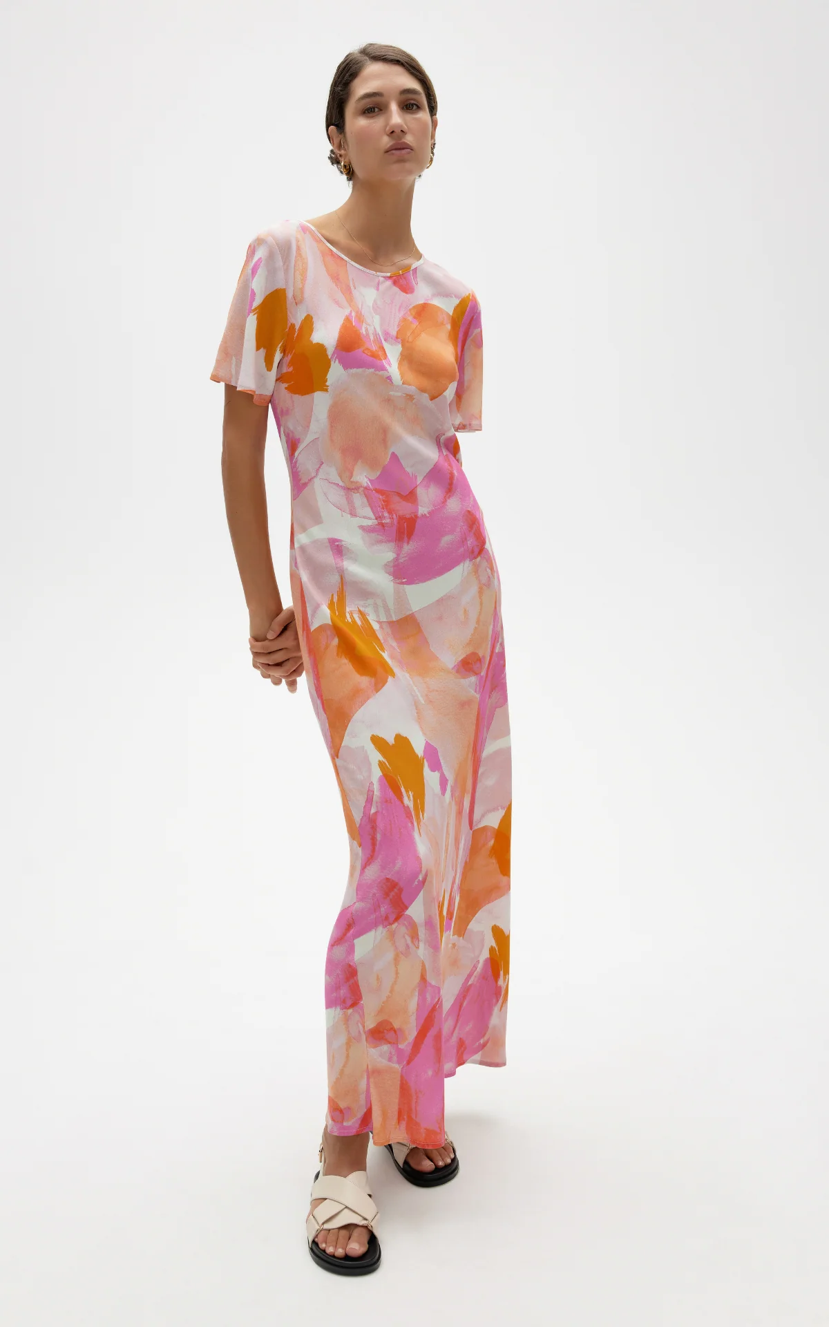 The Clare Dress is a bias cut, full-length style with short sleeves and a keyhole opening. Based off our best selling "Nadia Dress", this dress will flatter your body whilst providing shape.