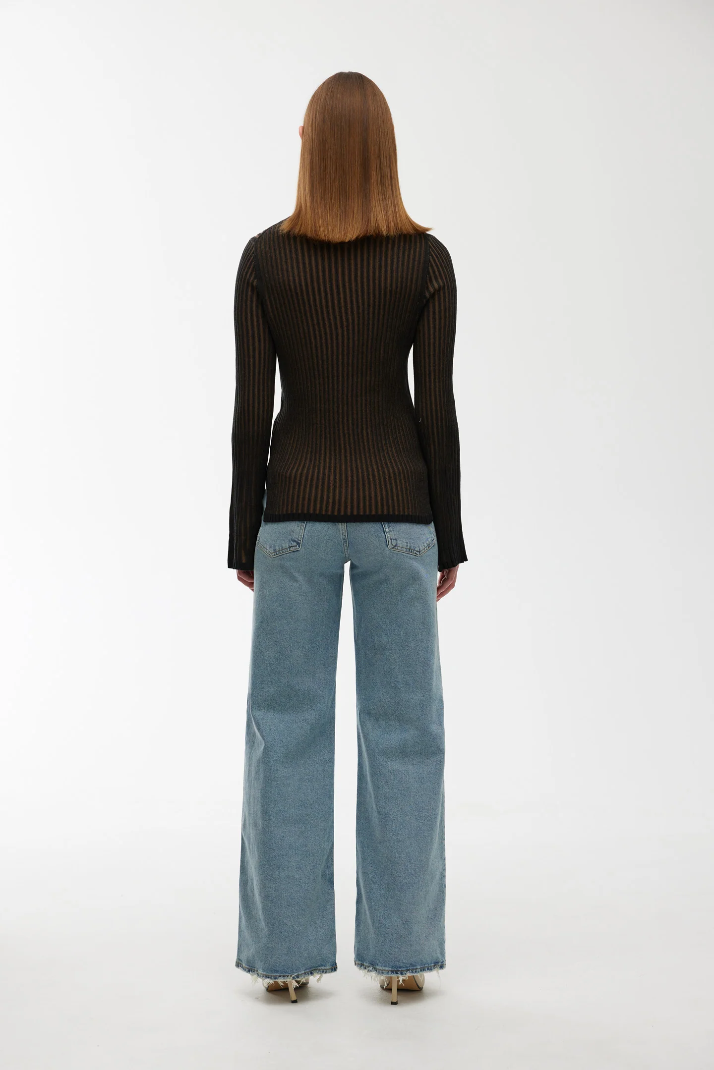 The Della Top in Cocoa is an elevated everyday knit crafted from an ultra-soft contrasting viscose cotton ribbing. Designed for a slim fit through the body, the Della Top features a high neckline, comfortable stretch and flared sleeves. Finished with black trimming at the hem and sleeve, this mid-weight knit is perfect for winter layering.