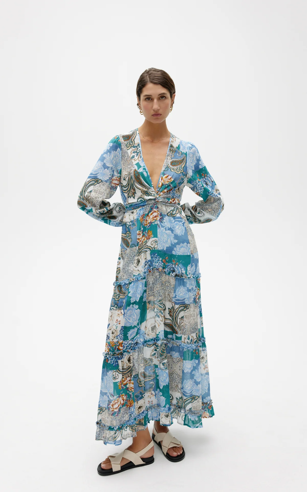 Our exclusive Cyan Patchwork print is a tapestry of detailed florals and complimentary colours that bring this piece to life.