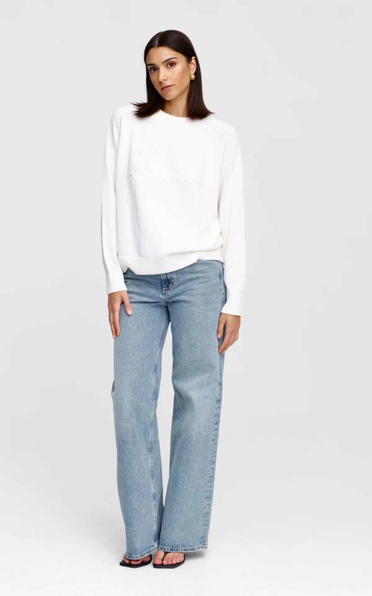 The Lover knit is a classic pull-over style, featuring our ‘Lover’ text in a refined knit applique technique. This mid-weight knit has raglan style sleeves and ribbed finishings. Perfect for layering in the cooler months.