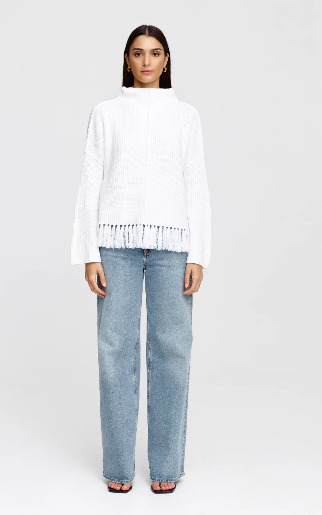The Malibu knit is a luxe, heavy-weight sweater with a high funnel neck collar and seam detailing. Featuring an ornamental tassel trim at the hem, this style is an elevated staple with a relaxed, everyday feel.
