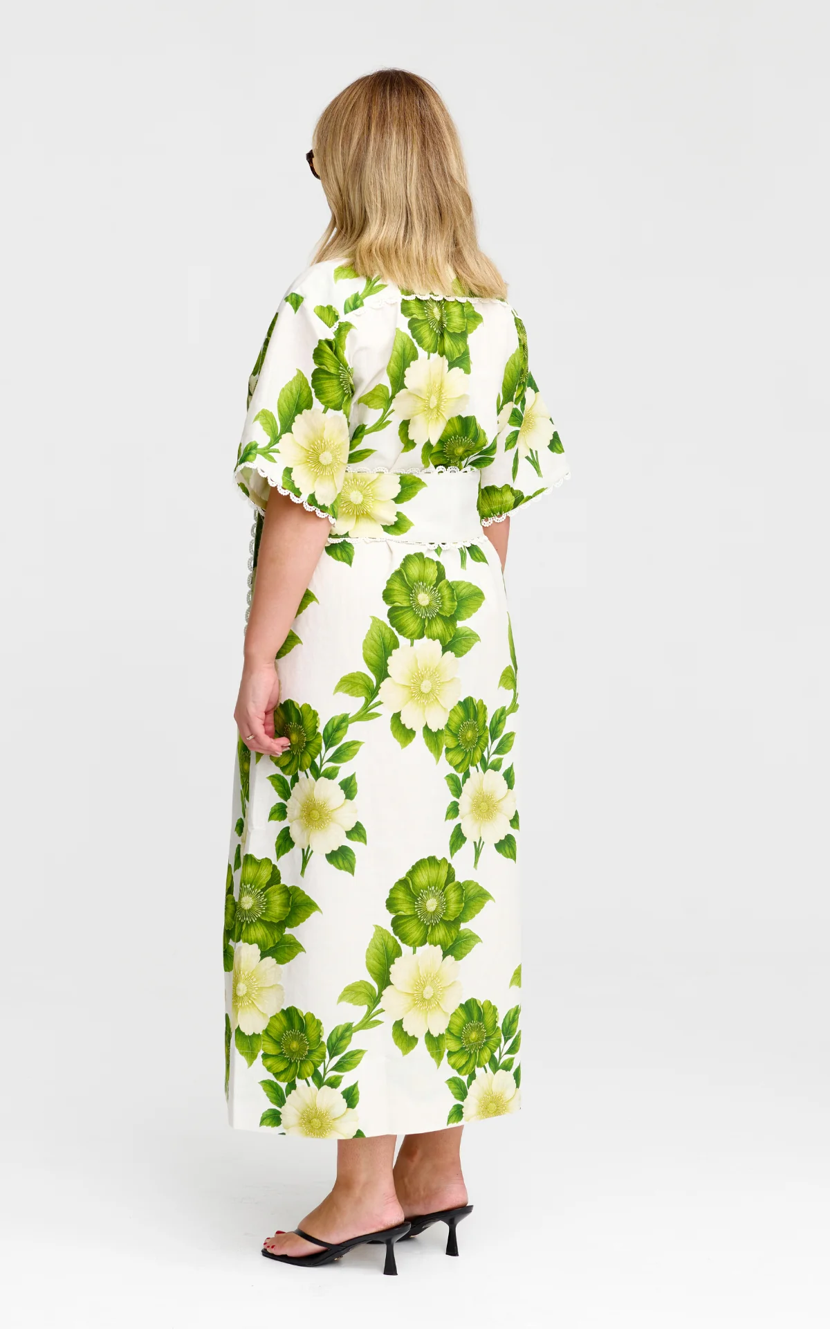 The Sierra Dress is a classic Kinney shirt-dress shape, adorned with our new scallop trim detail. The wide statement belt elevates this design, making it perfect for any event. Other design details include in-seam pockets, a double leaf collar and concealed button stand.